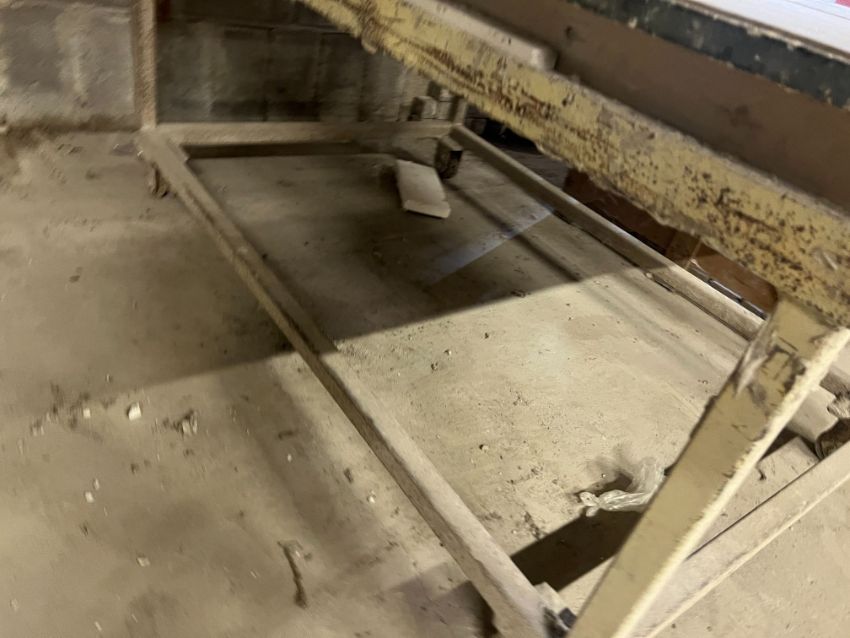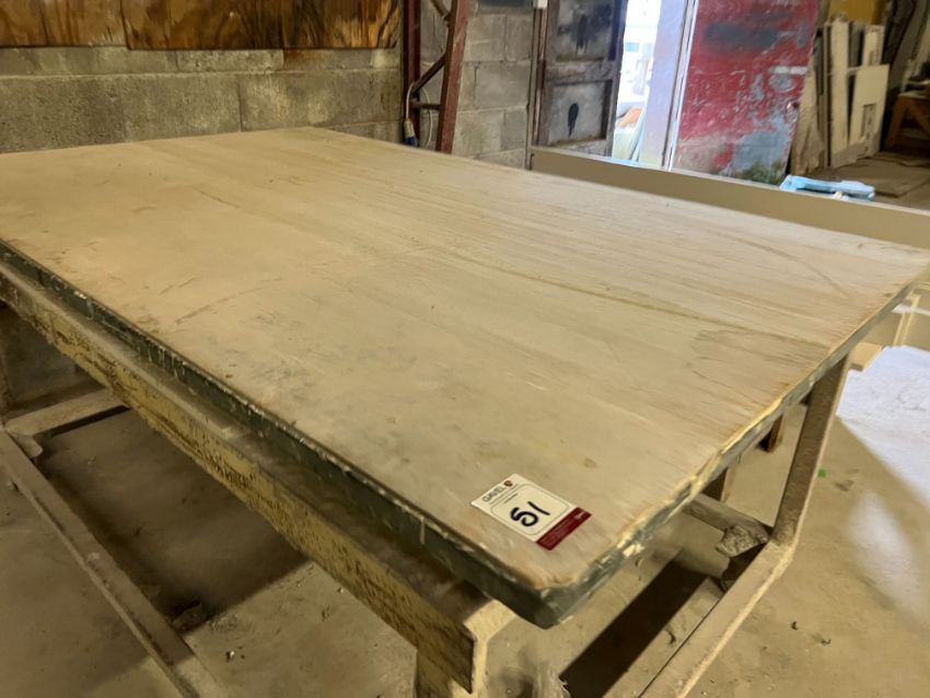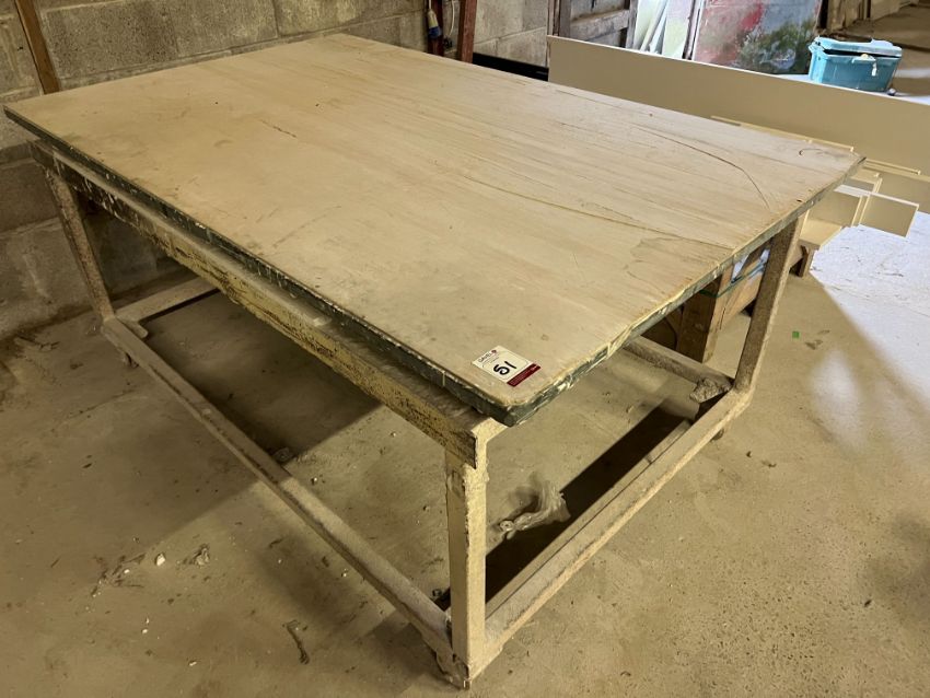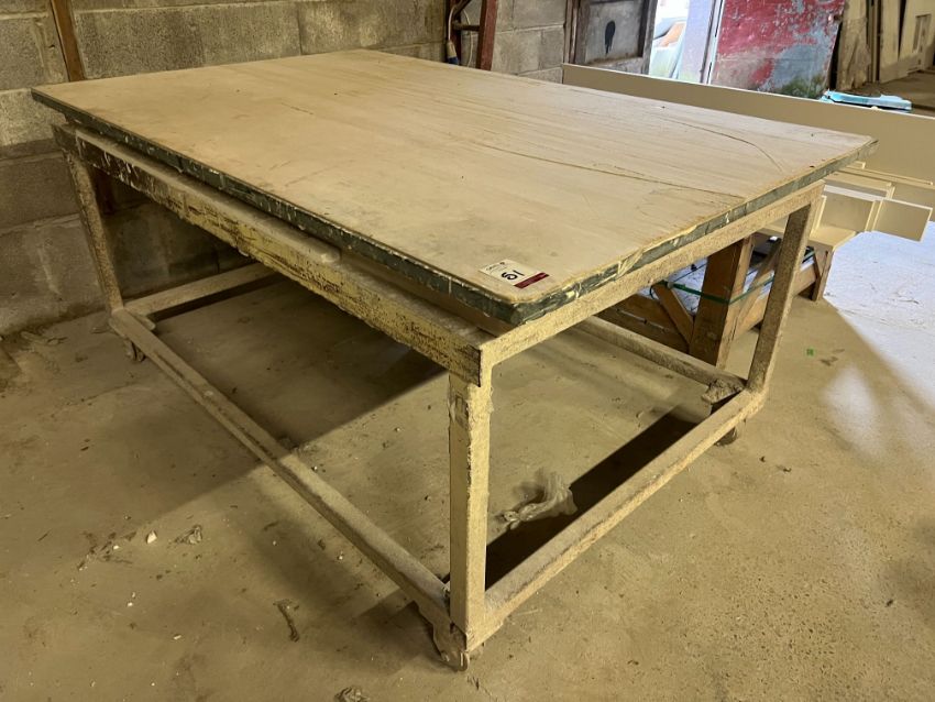 Steel Fabricated Mobile Bench 1960 x 1220 x 920mm, Note: Bench is Sat on Rail Track Wheels, Lot Location: Upper Building. Please Note: It is the responsibility of the purchaser to safely dismantle & remove their lots from their existing location, there will be no assistance in any form from Gavel Staff, purchasers are required to use their own tools, manpower & vehicles to remove their lots within the allocated collection time frame