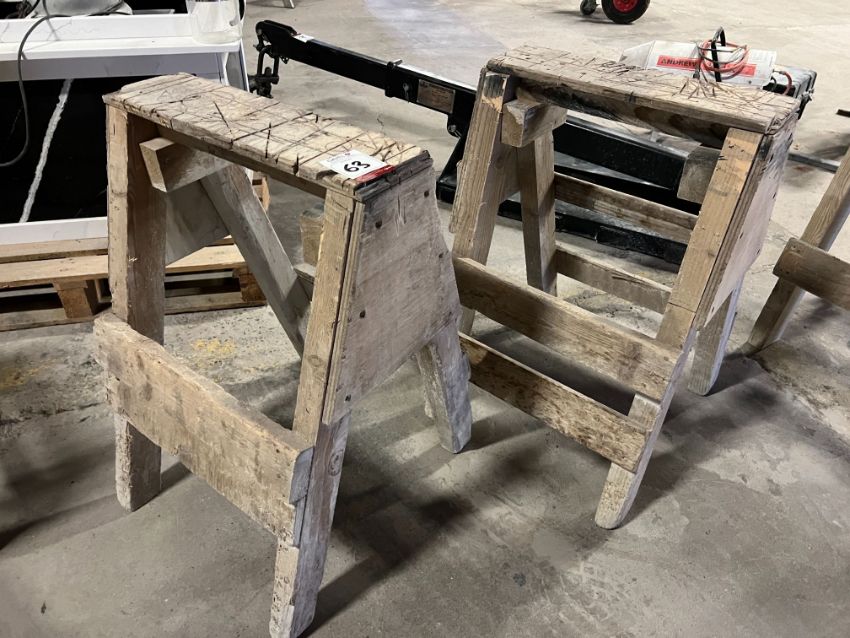 2no. Timber Trestles 520mm Wide, 760mm High, Lot Location: Upper Building. Please Note: It is the responsibility of the purchaser to safely dismantle & remove their lots from their existing location, there will be no assistance in any form from Gavel Staff, purchasers are required to use their own tools, manpower & vehicles to remove their lots within the allocated collection time frame