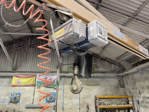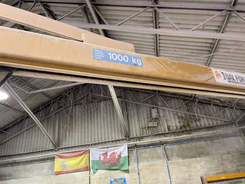 Donati Free Standing Jib Crane & Hoist, Max Load 1000kg. Approximately 6 Metre Crane Arm, Lot Location: Upper Building. Please Note: It is the responsibility of the purchaser to safely dismantle & remove their lots from their existing location, there will be no assistance in any form from Gavel Staff, purchasers are required to use their own tools, manpower & vehicles to remove their lots within the allocated collection time frame. Collection By Appointment Only - Tuesday 25 July