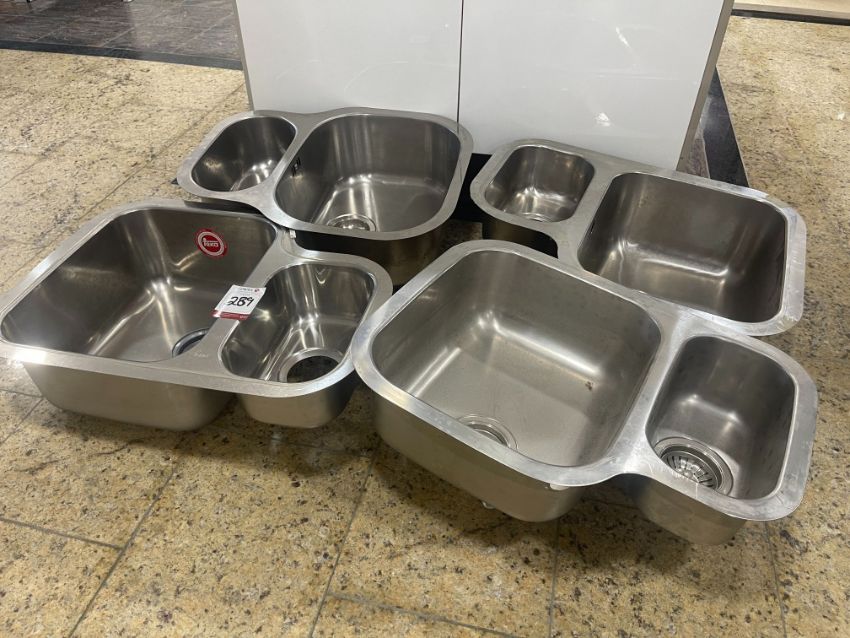 4no. Various Ex-Display Stainless Steel Sinks as Lotted , Lot Location: Showroom. Please Note: It is the responsibility of the purchaser to safely dismantle & remove their lots from their existing location, there will be no assistance in any form from Gavel Staff, purchasers are required to use their own tools, manpower & vehicles to remove their lots within the allocated collection time frame
